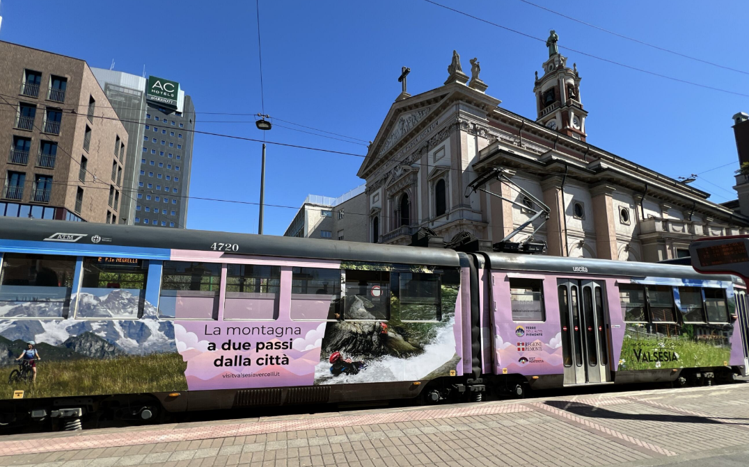 En 2025, ATL a de nouveau conçu une identité visuelle entièrement dédiée à la Valsesia et à ses nombreuses activités de plein air, après le succès de sa précédente création consacrée aux sports d’hiver. Déposée sur un tramway, cette identité visuelle emmène la « Merveilleuse Valsesia » défiler dans les rues de Milan, offrant des vues imprenables sur le Mont Rose et de nombreux aperçus des multiples activités de plein air que propose la Valsesia.
