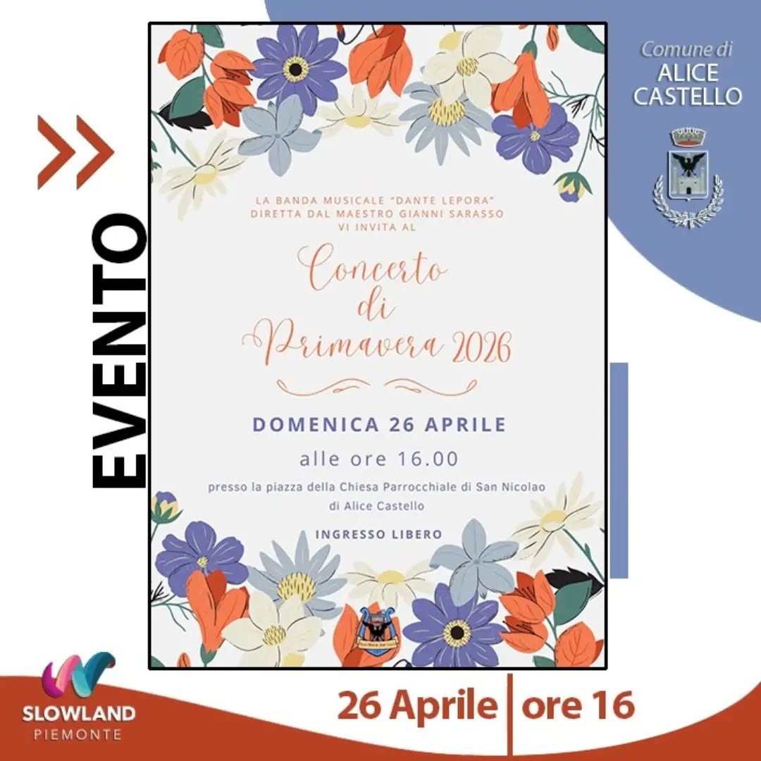 Domenica 26 aprile alle 16.00 presso la piazza della Chiesa Parrocchiale di San Nicolao di Alice Castello la banda musicale “Dante Lepora”, Concerto di Primavera, diretta dal maestro Gianni Sarasso.