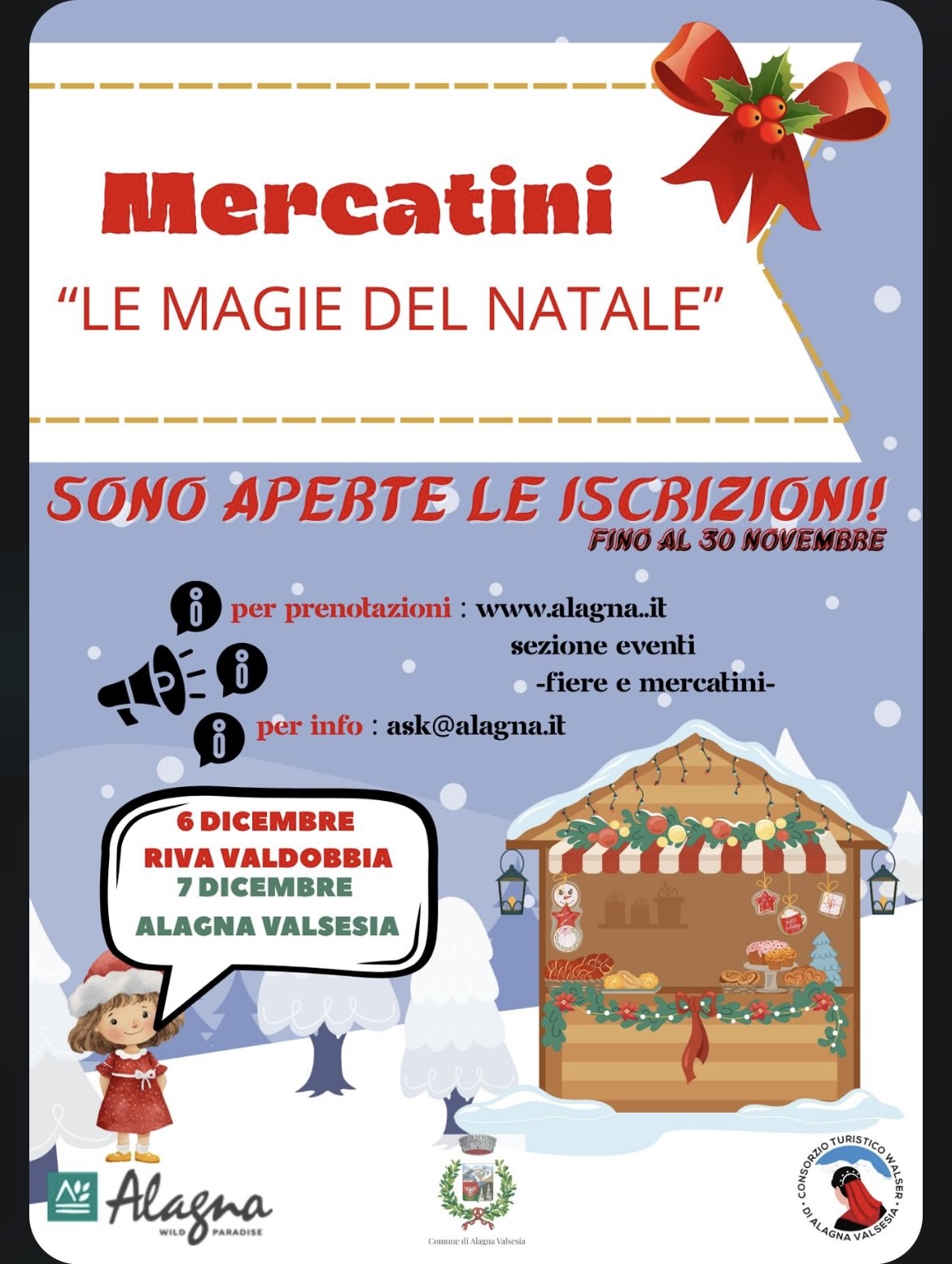 Sabato 6 dicembre a Riva Valdobbia dalle 9 alle 17.30 mercatino di Natale, seguiranno aggiornamenti sul programma!