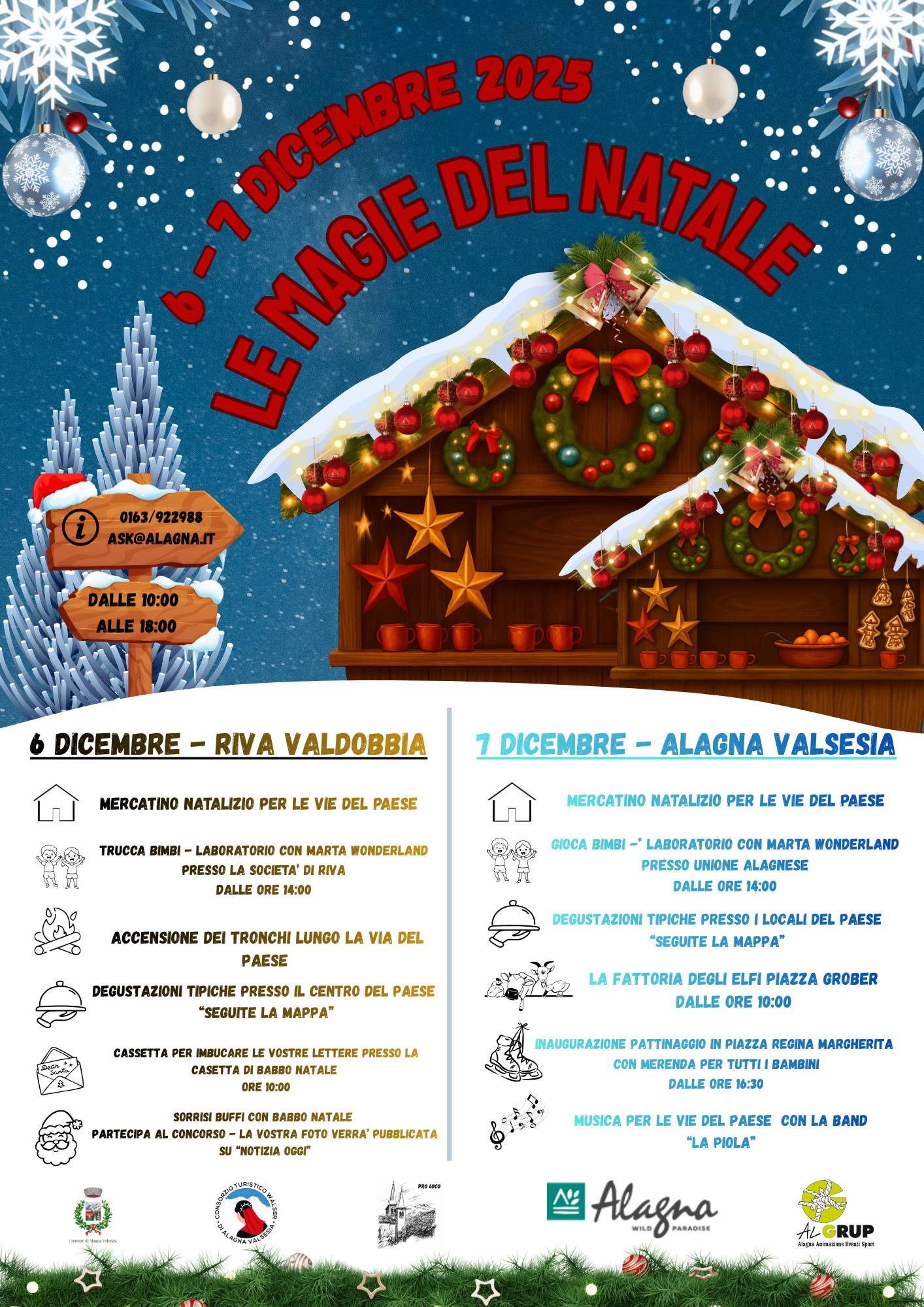 Sabato 6 dicembre a Riva Valdobbia dalle 9 alle 17.30 mercatino di Natale, seguiranno aggiornamenti sul programma!