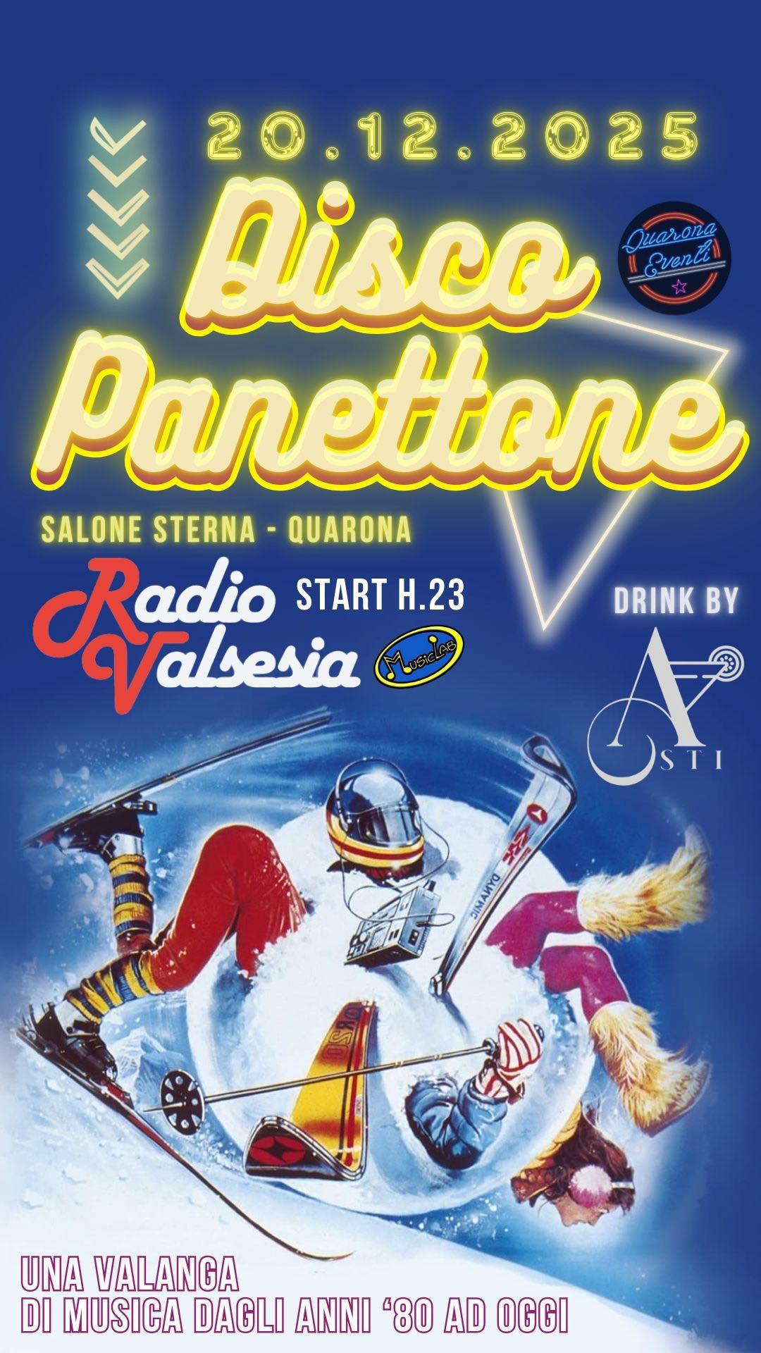 Disco Panettone 2025: Sabato 20 dicembre alle ore 23.00 ultima discoteca dell’anno al salone Sterna con i Dj di Radio Valsesia!
