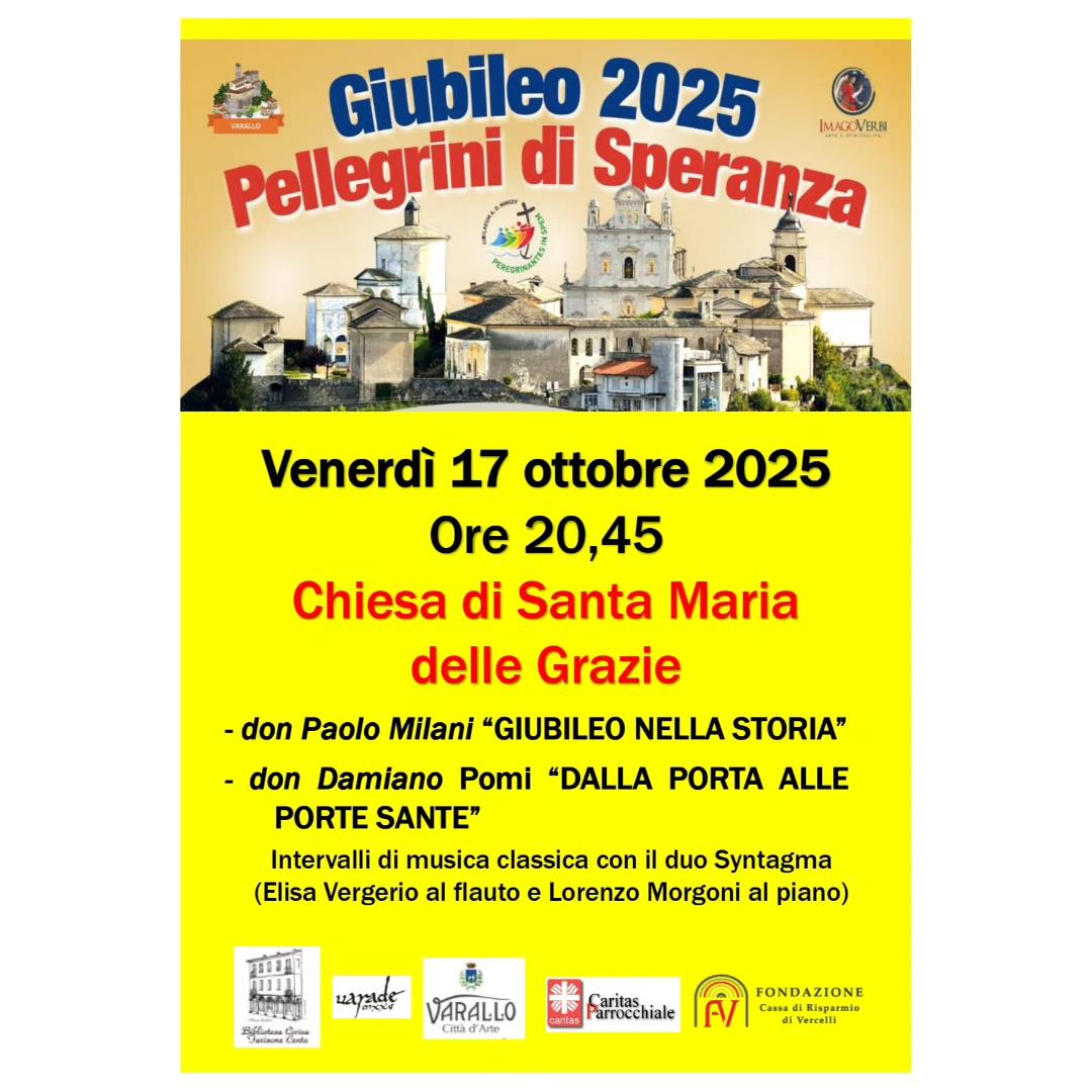 Nell’ambito del Giubileo della Speranza 2025 Imago Verbi e la @parrocchia1varallosesia, in collaborazione con la Caritas parrocchiale, la Fondazione CRV e il Comune di Varallo, hanno organizzato una serata venerdì 17 ottobre alle 20.45, presso Santa Maria delle Grazie, dedicata ad approfondire la storia del Giubileo e delle Porte Sante. Ingresso libero