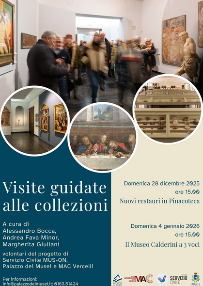Domenica 4 gennaio alle ore 15.00 Visita guidata al Museo Calderini a cura di Alessandro Bocca, Andrea Fava Minor e Margherita Giuliani: volontari del progetto di servizio civile MUS-ON, Palazzo dei Musei e MAC Vercelli