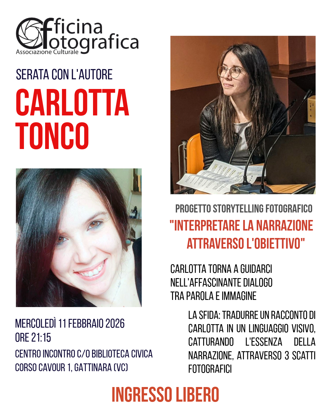 Sarà un’occasione per esplorare il rapporto tra narrativa e fotografia, confrontarsi con altri punti di vista e mettere alla prova la propria capacità di sintesi visiva.