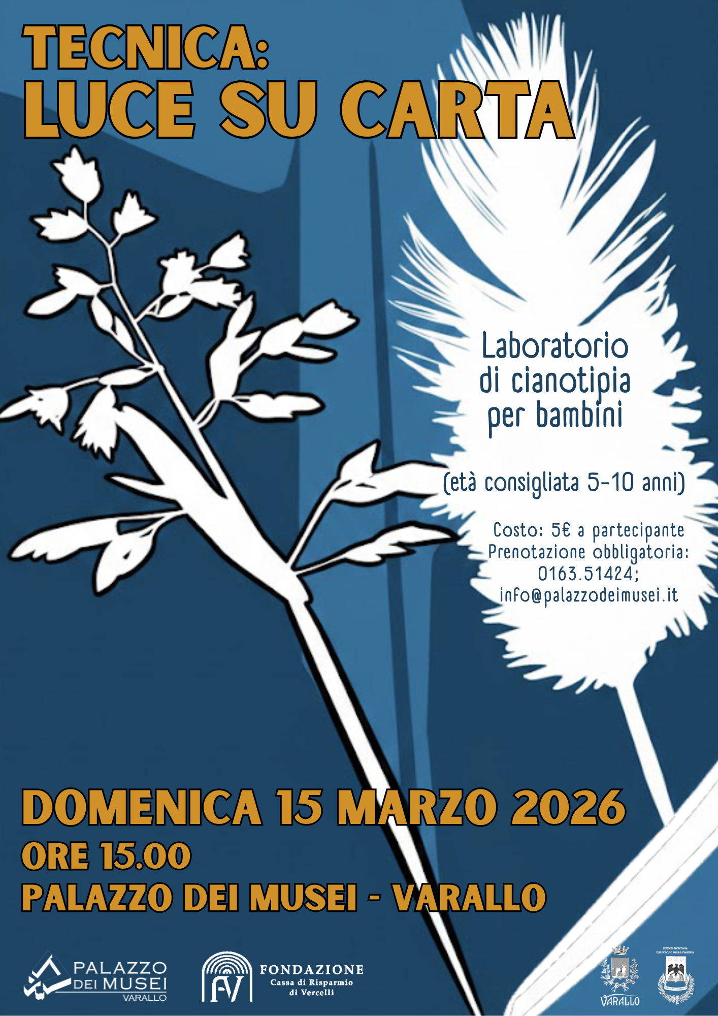 Domenica 15 marzo alle ore 15.00 presso Palazzo dei musei laboratorio di cianotipia per bambini (età consigliata 5-10 anni). La prenotazione è obbligatoria, contattare Palazzo dei musei.