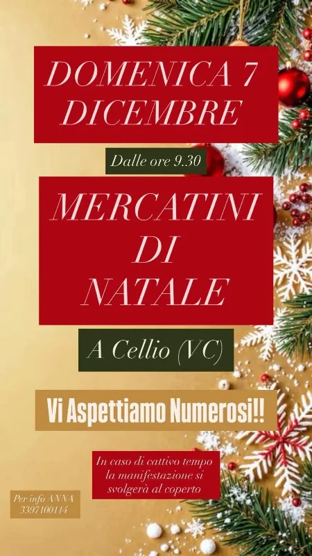 Domenica 7 dicembre si svolgerà il mercatino di Natale a Cellio con specialità enogastronomiche ed artigianato locale