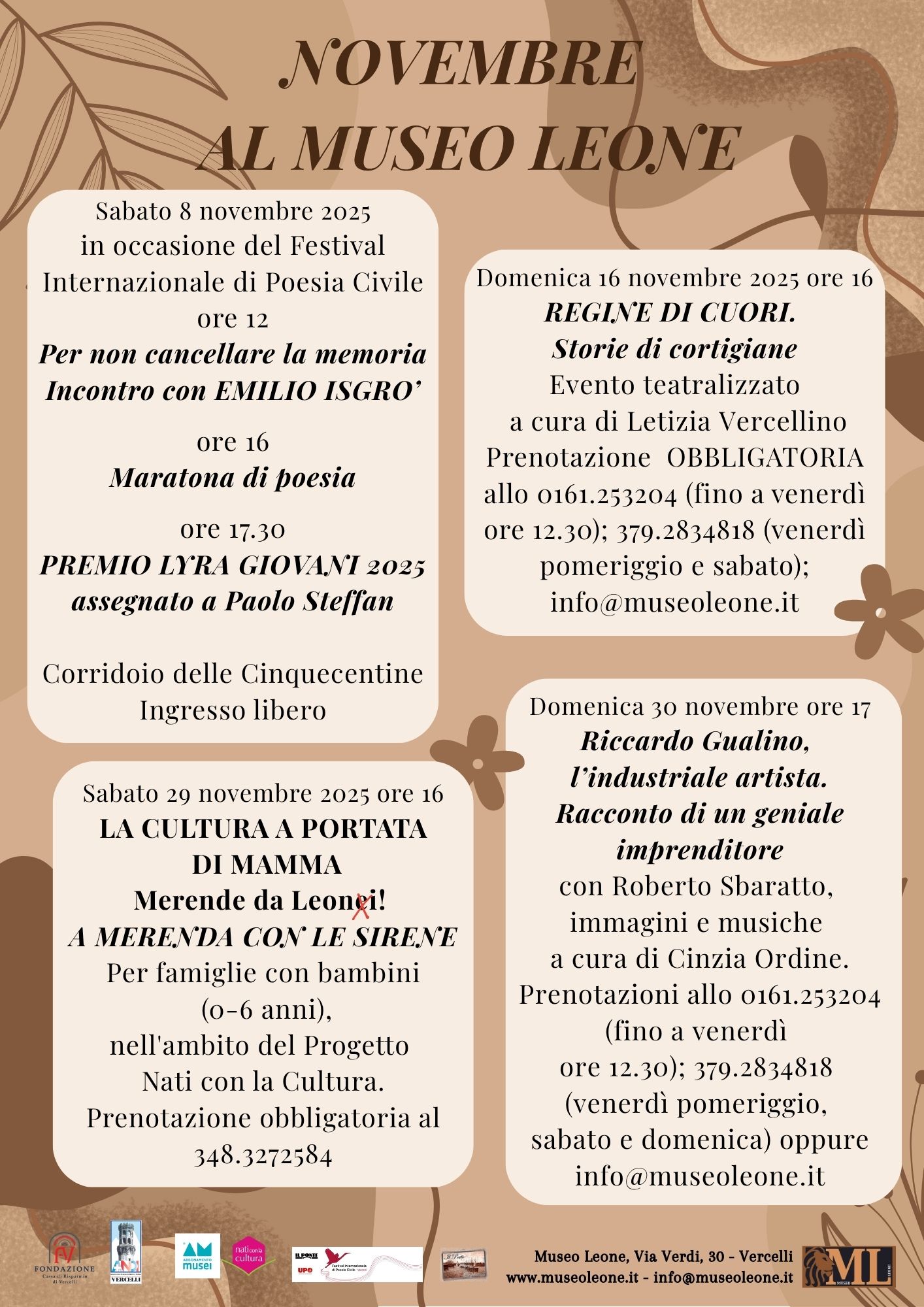 Proseguono nel mese di novembre gli eventi al Museo Leone di Vercelli: