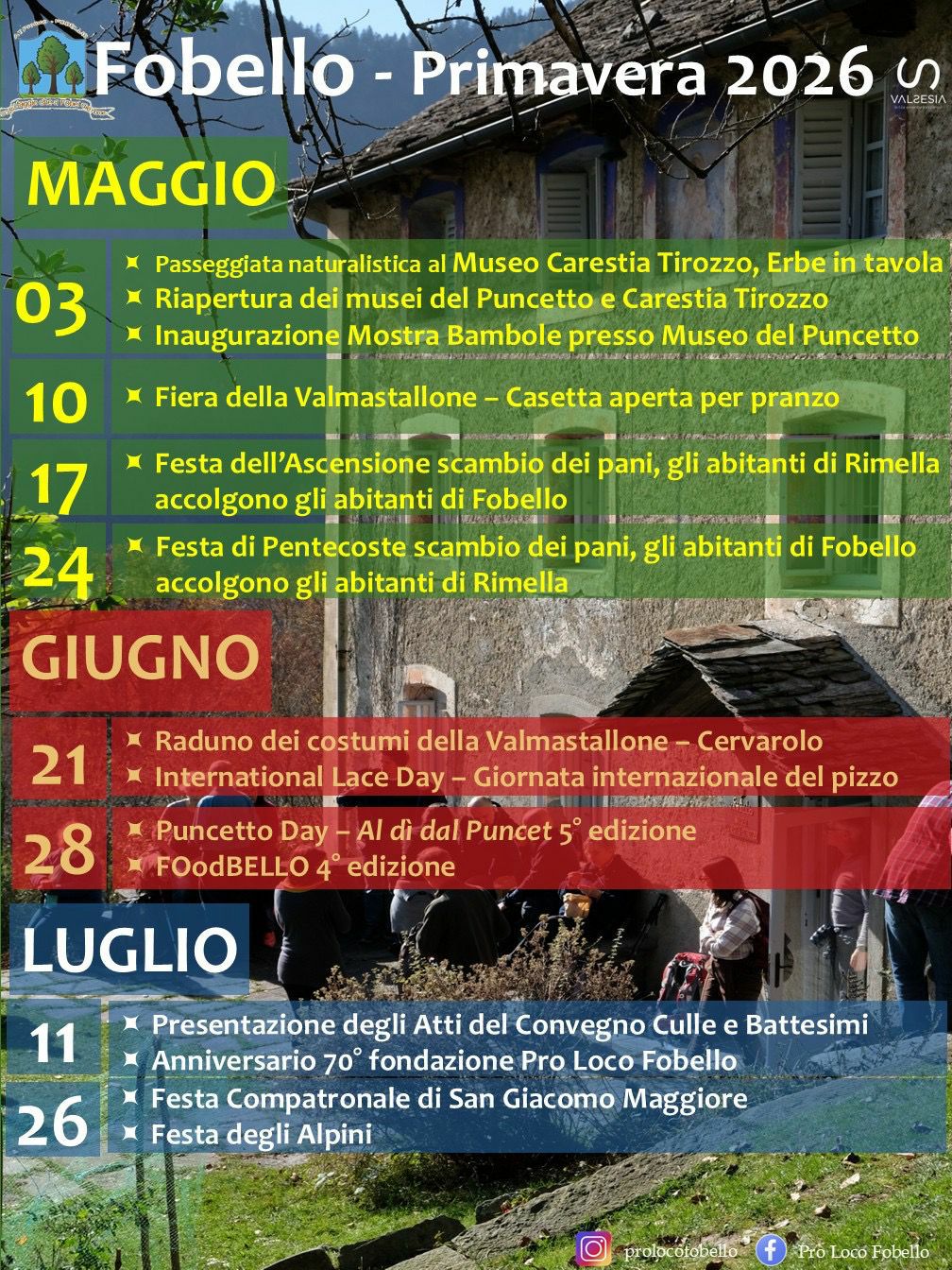 Il 28 giugno 2026 sarà organizzata la quinta edizione del Puncetto day a Fobello e in occasione si terrà anche la 4° edizione del FOodBELLO, food truck a Fobello.