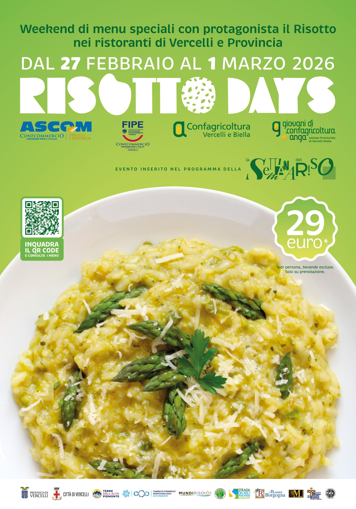 Menù speciali a €29 su prenotazione presso i ristoranti di Vercelli e Provincia aderenti con il RISOTTO come protagonista.
