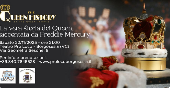 Sabato 22 novembre alle ore 21.00 presso la Pro Loco di Borgosesia: “The Queen History”: viaggio che attraverso musica, parole ed immagini ripercorre la meravigliosa epopea dei Queen.