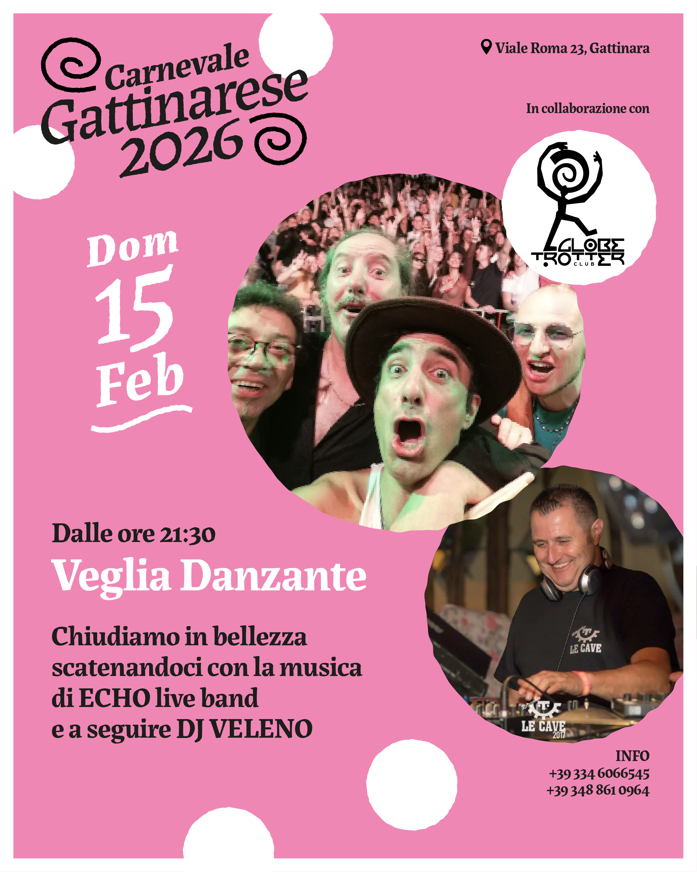 Domenica 15 febbraio dalle 21.30 veglia danzante a Gattinara con gli Echo live band e Dj Veleno