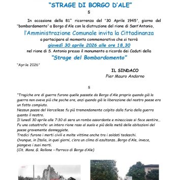 Giovedì 30 aprile a Borgo d’Ale la commemorazione della Strage del bombardamento avvenuta il 30 aprile 1945.