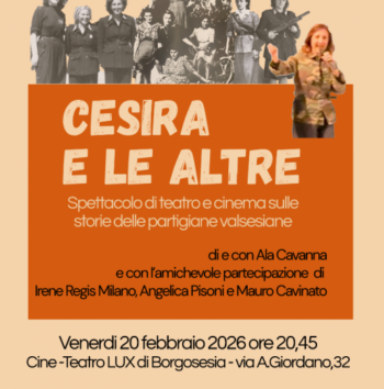 15 esima edizione della Rassegna tatrale a Campertogno diretta da Daniele Conserva. Alle ore 18 “Piccole storie Meneghine” reading teatrale Daniele Conserva. Con Daniele Conserva, Valentina Giupponi, Donatella Ceralli, Elisa Vergerio, Lorenza Stocchi