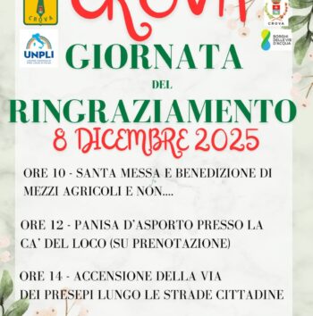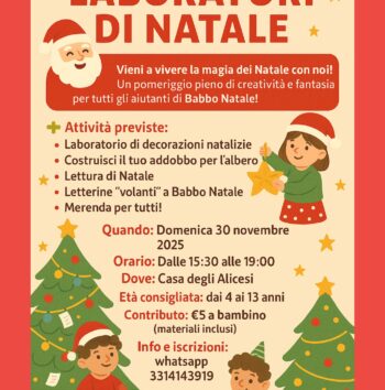 Sabato 13 dicembre 2025 dalle 9 alle 17 in Piazza Libertà, Corso Matteotti e Piazza Primo Maggio banchetti a tema natalizio, negozi aperti con esposizione esterna, spazio bimbi, Musiche Natalizie con la Seraval Band, Visita guidata al Museo.