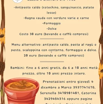 Prenotazioni entro venerdì 14 novembre. Contributo € 15, da devolvere ai progetti dell’associazione.