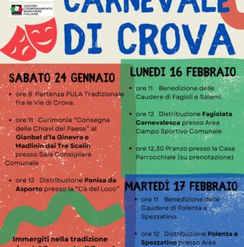 martedì 3 febbraio visita delle maschere: ore 9.30 asilo nido, ore 10.30 scuola materna, ore 11.15 casa di riposo.