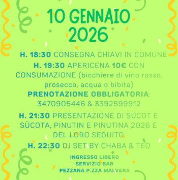 Il 15 febbraio alle ore 6.00 accensione dei fuochi, ore 11.30 ricevimento autorità e benedizione dei calderoni, ore 12 distribuzione della Paniccia e alle 13 pranzo in compagnia presso l’Oratorio G Pastore e consegna del Dugo d’Argento 2026. Info: Renato Miglio 3474255348 Sergio Miglio 3472718764