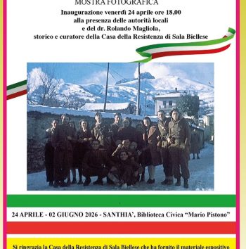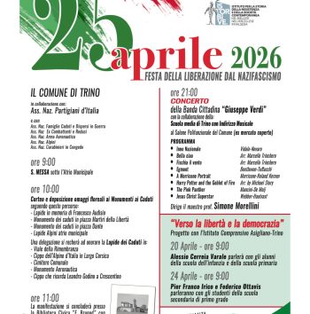 Nell’occasione dell’81° anniversario della Liberazione, martedì 21 aprile 2026, a Borgosesia, al Centro studi e documentazione Giovanni Turcotti (via dott. Ferro, 48), alle ore 20.45, si terrà la conferenza Primavera di libertà. Borgosesia tra 25 aprile e Primo maggio 1945, a cura di Nicolò D’Oria, storico e collaboratore dell’Istorbive. L’iniziativa è organizzata da Comune e Consulta della Cultura “Agorà del Borgo” di Borgosesia, in collaborzione con Istorbive e Centro studi Giovanni Turcotti. Info: Sito web Istorbive
