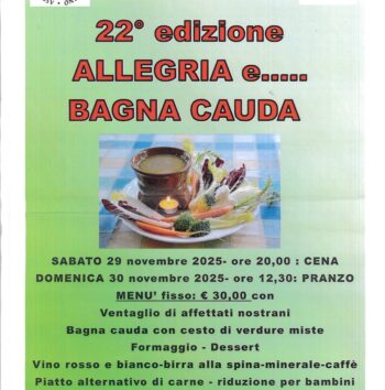 Prenotazioni entro venerdì 14 novembre. Contributo € 15, da devolvere ai progetti dell’associazione.