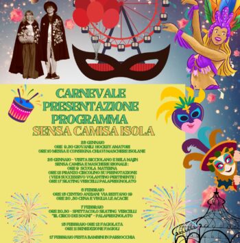 martedì 3 febbraio visita delle maschere: ore 9.30 asilo nido, ore 10.30 scuola materna, ore 11.15 casa di riposo.