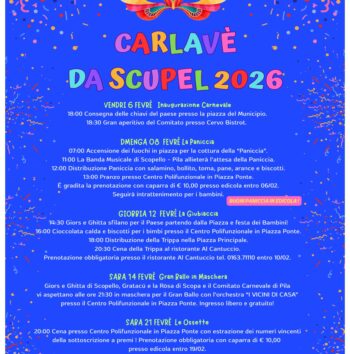 Venerdì 23 gennaio dalle 18.00 alle 21.00 e sabato 24 gennaio dalle 10.00 alle 15.00, i membri del Comitato Carnevale e tutta la corte di Marcantonio suonano di casa in casa a raccogliere un obolo per confezionare il piatto tipico della tradizione di Varallo.Info: carnevalevarallo@gmail.com