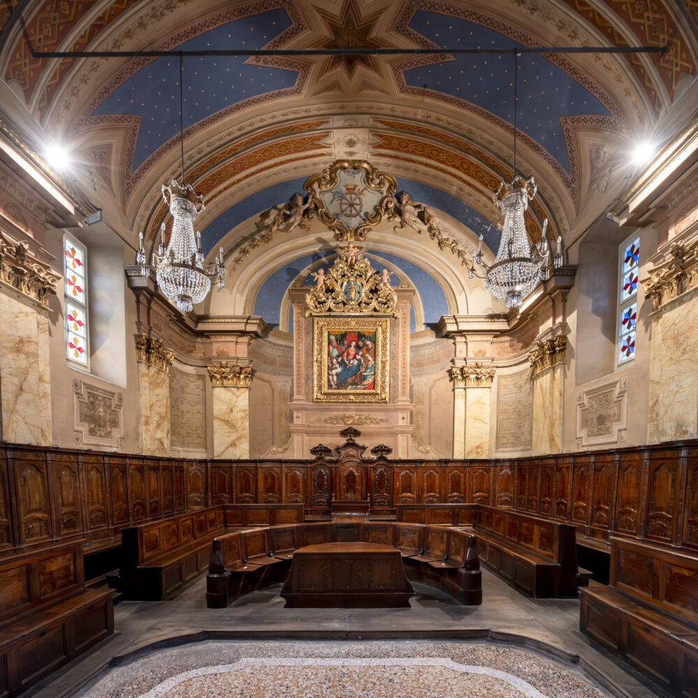 Nel centro storico di Vercelli, si trova la Chiesa di Santa Caterina d’Alessandria, sede della più antica confraternita della città, la cui origine risale al 1350. Dalla pianta rettangolare con unica navata, l’interno dell’edifico è decorato da numerosi decori e cromie e presenta un maestoso altare con alle spalle un bellissimo coro ligneo al cui centro è posto un dipinto cinquecentesco rappresentante il “Matrimonio mistico di Santa Caterina” di Gerolamo Giovenone.